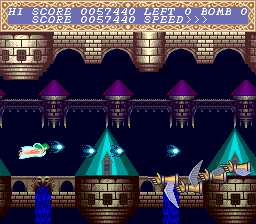 While there’s nothing out there quite like Cho Aniki, the closest is Gynoug, a Genesis shooter also made by Masaya. Known as Wings of Wor in America, there are a lot of graphical similarities to the first PC Engine Cho Aniki games, including the bizarre disposition of shoving human facial features on machinery. Which makes sense – the same graphic designer worked on both titles, although Gynoug is somewhat more gruesome. It’s a slightly better game too, with some rather impressive effects for Sega’s 16-bit workhouse, although the lack of decent music does hurt it a little bit.