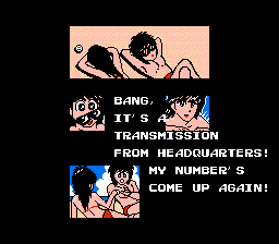 Clash at Demonhead opens with a cutscene, where main characters Bang and Mary are relaxing on a beach after having finished their last mission. They’re secret agents, though the intro doesn’t disclose what organization they’re a part of. The manual calls the group “Sabre Tiger”, while the back of the box refers to it as being the “Special Assault Brigade for Real Emergencies” (S.A.B.R.E.). Neither version is ever mentioned in the game proper. Regardless, their time off is cut short when Mary’s communicator begins to go off. It seems that Professor Plum, the creator of the appropriately named Doomsday Bomb, has been kidnapped, and is being held captive at a secret base inside of the titular Demonhead.
