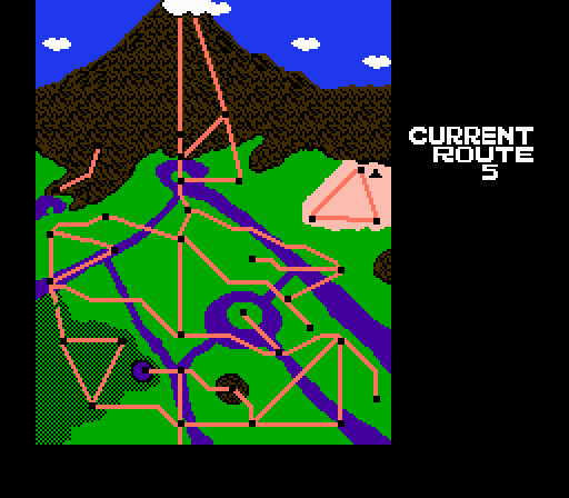 And the game offers a lot – at the end of Route 1 is a small statue of a demon head. Once touched, it brings you back to the map screen, only this time Bang’s placement has moved to indicate the player’s progress. Additionally, they’re now able to make a choice using the B button; they can either move on to assorted other Routes or head back the way they came. The only real indication of a goal at this point comes from the intro (find Professor Plum), and from Tom Guycot, a caped skeleton who accosts you on Route 1 to tell you that he’s scattered the seven medallions necessary to disarm the Doomsday Bomb. Where those medallions are and how to find them is left to the player’s devices, or possibly a quick internet search.
