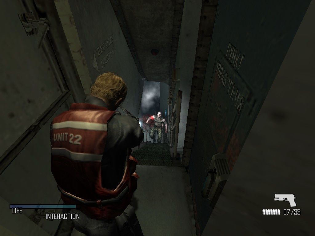 The first enemies you encounter are not monsters or zombies, but living and breathing humans. The frightened Russian sailors will shoot on sight, but soon enough you will encounter zombies and the parasite that turns them into zombie, here called exocells. The exocells are spider-like creatures, that are challenging early on, as they are small and you will waste several bullets trying to kill them. The zombies come in two varieties, armed and unarmed. Usually, the zombies will be equipped with knives and meat cleavers.