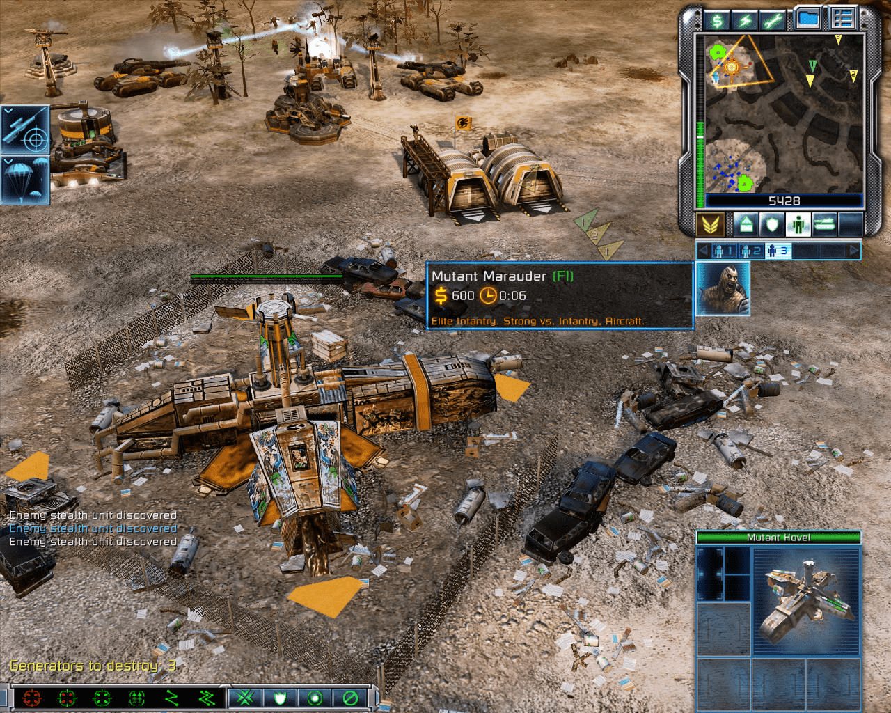 The titular faction in The Forgotten for one is faithful to the spirit of the lore while being remarkably playable. Reflecting their harsh circumstances, most of their structures have a ramshackle, dilapidated look to them (which wouldn’t be too out of place in a post-apocalyptic setting like Mad Max), a good deal of which even have Tiberium growing on them. This battered aesthetic also extends to their arsenal, much of it being either repurposed, modified GDI and Nod equipment left over from Tiberian Sun (including the use of explosive disks and Tick Tanks) or jury-rigged weapons made from abandoned tech going back to the First Tiberium War (such as their Longhorn heavy tanks and Humvee-based Light Jeeps), to say nothing of the actual mutants (which include almost-human Salvagers and Beastmasters as well as the more visibly deformed Marauders). Despite the seeming disadvantages against everyone else, though, they still have more than a few tricks up their sleeve, such as how their power stations can also be upgraded with an assortment of turrets (rendering them impromptu defense towers), their ability to quickly overwhelm enemies through surprise and a mastery of Tiberium-based wildlife to the point of controllable Tiberium Fiends and even weaponized Veinhole Monsters. What you wind up with is a side that may be trickier to get the hang of, but is nonetheless balanced and capable of holding its own against the rest of the roster, with the rather decent voice acting an added bonus.