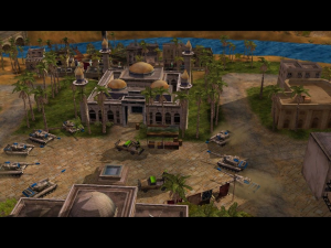 Another distinctive aspect is the premise. In a break from other entries in the series – set in either the serious Tiberian timeline or the campier, alternate history of Red Alert – the game takes place in a near-future universe not unlike our own, more specifically involving a War on Terror gone wrong. Three distinct factions find themselves in midst of a conflict spanning Asia and the Middle East, each with their own campaign: the powerful United States, the nominally allied People’s Republic of China and an insidious terrorist organization known as the Global Liberation Army. The actual campaigns meanwhile (told through generally bombastic in-game cutscenes and loading screen briefings) try to convey a gritty, bombastic storyline reminiscent of a John Ringo book or Tom Clancy movie, albeit without the FMV interludes the franchise is known for. The result isn’t entirely successful, as the storyline comes across as relatively vague and not fully fleshed-out. There isn’t much in the way of memorable characters akin to Kane or Yuri to be found either, which may dampen immersion into the plot. Nonetheless, it does well in capturing the zeitgeist of the immediate post-9/11 aftermath while managing to stand on its own; that it unintentionally anticipates more contemporary current issues like the emergence of the Islamic State/ISIS, the growing use of drones and a more aggressive China on the world stage also lends much to the setting’s poignancy.