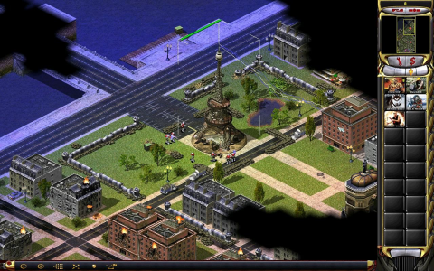 This extends as well to RA2’s gameplay by codifying and popularizing aspects of the Command and Conquer formula, as it’s known today. For the first time in the franchise, for example, the game introduces the ability for troops to garrison structures (like bunkers and civilian buildings) to significantly increase their effectiveness so long as said structures remain standing; while at this point only basic infantry such as Soviet Conscripts can enter buildings, garrisoned units especially in large numbers can do a good job holding down strategic sections of the battlefield. RA2 also toys around with having some units come with some secondary ability, such as Allied IFVs switching weapons depending on the unit stationed inside (with Engineers turning them into repair vehicles) and GIs capable of hunkering down with heavy MGs, or Soviet Psi-Corps Troopers being able to unleash a psychic blast and Tesla Troopers being able to supercharge any nearby Tesla Coils.