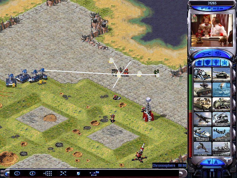 At the same time, not only are there significantly more in the way of FMVs and CG cutscenes (close to an hour’s worth of footage), but also a larger cast to accompany them, featuring a number of character actors and B-movie stars. The Allies for instance have a colorful ensemble like US President Dugan (Ray Wise) and Special Agent Tanya Adams (Kari Wuhrer), which the Soviets more than compensate with the likes of Premier Romanov (Nicholas Worth) and the infamous Yuri (Udo Kier) in all his entertainingly villainous stride; this isn’t even getting to Gen. Carville (Barry Corbin) making a return from Retaliation – while channeling even more of WarGames – or your loyal and very personable intel officers, Lt. Eva (Athena Massey) and Lt. Zofia (Aleksandra Kaniak). Aside from the evidently higher budget on display and the rather cinematic flair, these FMVs don’t just continue the then-emergent franchise trend of having recognizable celebrities. But they’re also integrated during gameplay in the form of “incoming transmissions” (a first for the series, though previously introduced in Tiberian Sun) alongside voice-acted scripted moments, all while doing a good job in conveying how you are the main character. But when combined with good writing, memorable performances and setpiece spectacle, they help bring the Red Alert universe to vivid life like never before. Which further adds to the replay value, if only to see the story unfold again and the humorous elephant in the room.