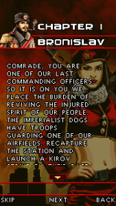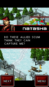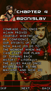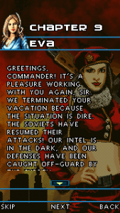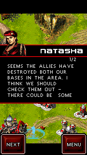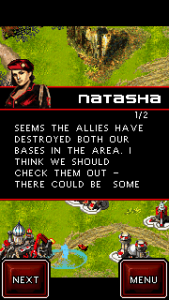 The story is told in fifteen missions – seven for the Allies, eight for the Soviets – divided into two campaigns. Before each missions, the player is briefed by Bronislav, Soviet elite sniper Natasha, Allied intelligence officer Eva, or Allied commando Tanya. The plot is overall serviceable and above-average for a mobile game, but not exactly groundbreaking. There are even in-mission cutscenes, something that not even the earliest Command & Conquer main entries had. The setup and idea to bridge the two Red Alert games is something nobody was asking for, but is interesting nevertheless.