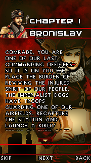 Unlike the J2ME version of Command & Conquer 3: Tiberium Wars, which was turned into a mix between tactical builder and tower defense game, Command & Conquer: Red Alert Mobile is a traditional real-time strategy game for the most part. It is based on Command & Conquer: Red Alert 2 both with regards to story and style. Red Alert Mobile takes place at the (canonical) end of the second war between the Allies and the Soviet Union. The Soviet Union and its allies failed to take over the world and Allied tanks are knocking at the doors of the Kremlin. A Soviet general named Bronislav decides to take matters into his own hands and travel back in time to prevent the tide of the war from turning against the Soviets.