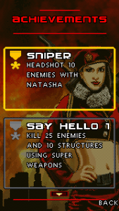 Other good design choices include some of the tech structures like the hospital, which grants all infantry units regeneration, the academy, which gives all new units a promotion, or the oil derrick, which provides the player with extra income. These structures work just like this in Red Alert 3, but their passive bonuses are even more important in Red Alert Mobile, as they allow the player to gain a benefit without adding any more layers of complexity. Another sensible choice is the omission of air units as independent units. Instead, they are now easy-to-use support powers. Other nice additions include a little encyclopedia about the game as well as achievements – on a 2009 mobile game!