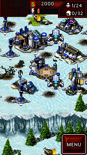 Other elements that unexpectedly made the jump to J2ME are tech structures and garrisonable buildings. The former provide the player with a boon such as automatic promotions for all units, whereas the latter grant a high defense bonus to infantry. This makes the otherwise fragile infantry units a more viable choice. The famous shark-faced Kirvo airship, the bane of many a player in Red Alert 2 multiplayer matches, is not available as a separate unit, but can be called in as a support power.