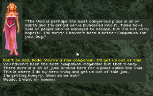 But this also points to the biggest flaw of Companions of Xanth. No offense to Mr. Anthony, but his writing has always been a bit on the juvenile side. The book can barely talk about Nada Naga without discussing her ample tits, and it shouldn’t be surprising that the previous novel was called The Color of Her Panties. The game reels this back a bit, but it still keeps the rather simplistic style. Its straightforwardness makes it easier to get into than, say, Robert Jordan or JRR Tolkien, but since the game apes Anthony so closely, it’s missing much of the eloquence and wit that mark many of Legend’s other games. As such, the quality of the source material renders Companions of Xanth one of the weaker of the company’s titles, even though it’s still a worthwhile adventure.