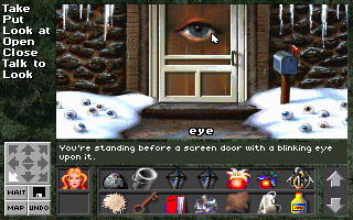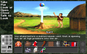Getting acquainted with the game is certainly easy enough. Legend Entertainment was founded to continue the legacy of text adventures, and did everything in their power to make them palatable to (then) modern gamers. Graphics! Automaps! A menu driven interface that lists all possible verbs and nouns! But despite these efforts, by 1994, certain business realities dictated them to finally give up the ghost and go with a completely mouse driven parser. Companions of Xanth is the first game to use this interface, and refinements were used in all successive games. It’s remarkably user friendly, while keeping many of the major elements of text-based games. The whole adventure is played from the first person perspective, with a list of verbs on the left side of the screen. The visual animation is very sparse, and many actions are simply dictated through text. You can double click on anything on the screen to interact with them, although picking any object will also bring up additional context sensitive verbs (such as “push” and “pull” for a lever.)