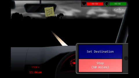 This and the ubiquitous countdown are just a few of the ways time management becomes the most important aspect of the game. When driving from town to town, a large variety of random encounters will happen, which can also result in a change of location or even more wasted time, depending on your choices. They’re used to great effect, as they’re intriguing and feel worthy of pursuit in the early game. As the clock ticks down, however, it will be common to choose the “shrug and drive on” option while openly allowing innocent people to be taken by the game’s oncoming monsters. There’s no penalty for doing this, so it’s up to the player to weigh the potential rewards of getting out of the car rather than trying to reach their destination in time.