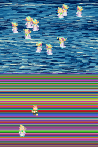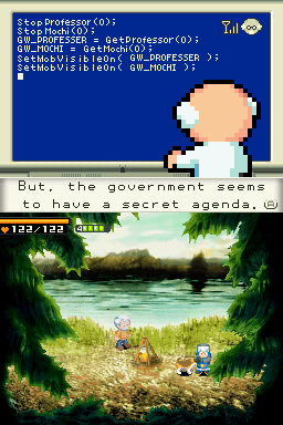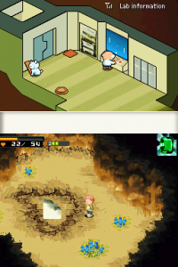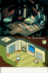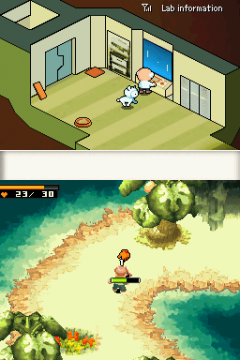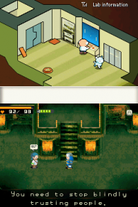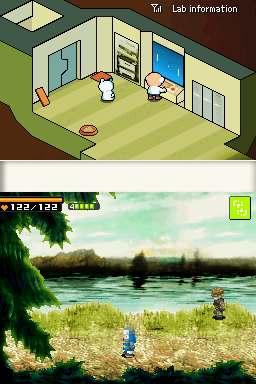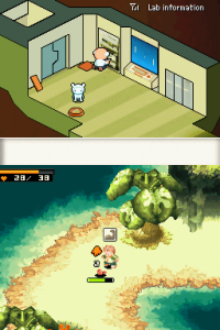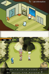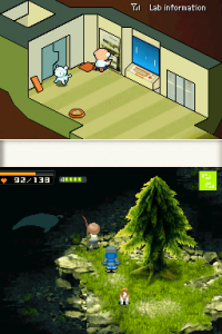 There are weird ideas here that should be revisited as well. The sticker system acts as both an equipment system, where you get random buffs you can add on, or as methods of special attacks with all sorts of strange qualities. The first you get is only as strong as how happy you make the professor’s dog, which you can briefly play with whenever Terry sleeps, which you have him do to save. It’s hard to think of another game that has such a level of tone dissonance on purpose as seeing a bunch of military soldiers involved in illegal experiments spinning around like a child playing helicopter and then having to explode their skeletons out with sword stabbing. There was even a sort of multiplayer aspect with the WiFi island system, where people you share friend codes with can show up in your single player game with special items. There’s a vision here that’s well realized, and should be fleshed out further.