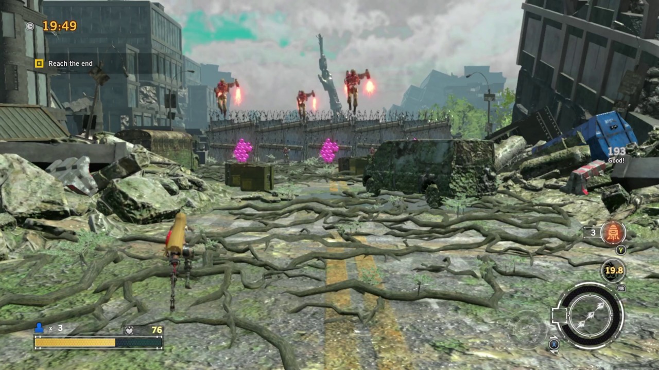 Ultimately, the biggest issue Rogue Corps faces is that it’s incredibly repetitive. Within a couple of hours, you’ll have seen the majority of the enemies and environments on offer. Many missions reuse level layouts, only making changes to where enemies are distributed. Said level layouts are never interesting to walk through either, consisting mostly of dilapidated sections of the city. Bigger enemies are thrown at you in bulk, especially towards the end, making missions drag to the point that they can take around 15 minutes or more. Even when you’ve made it into the post-game and are working on the extra-challenging expedition and chaos missions, you’re still fighting the same handful of enemies you’ve been fighting the entire game. Rogue Corps doesn’t allow you to pause the game at all, even when playing solo, so it expects commitment in every moment of play. Because of all this, most people are going to tap out well before they encounter any of the game’s better qualities, which is certainly understandable.