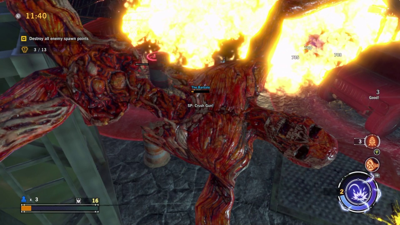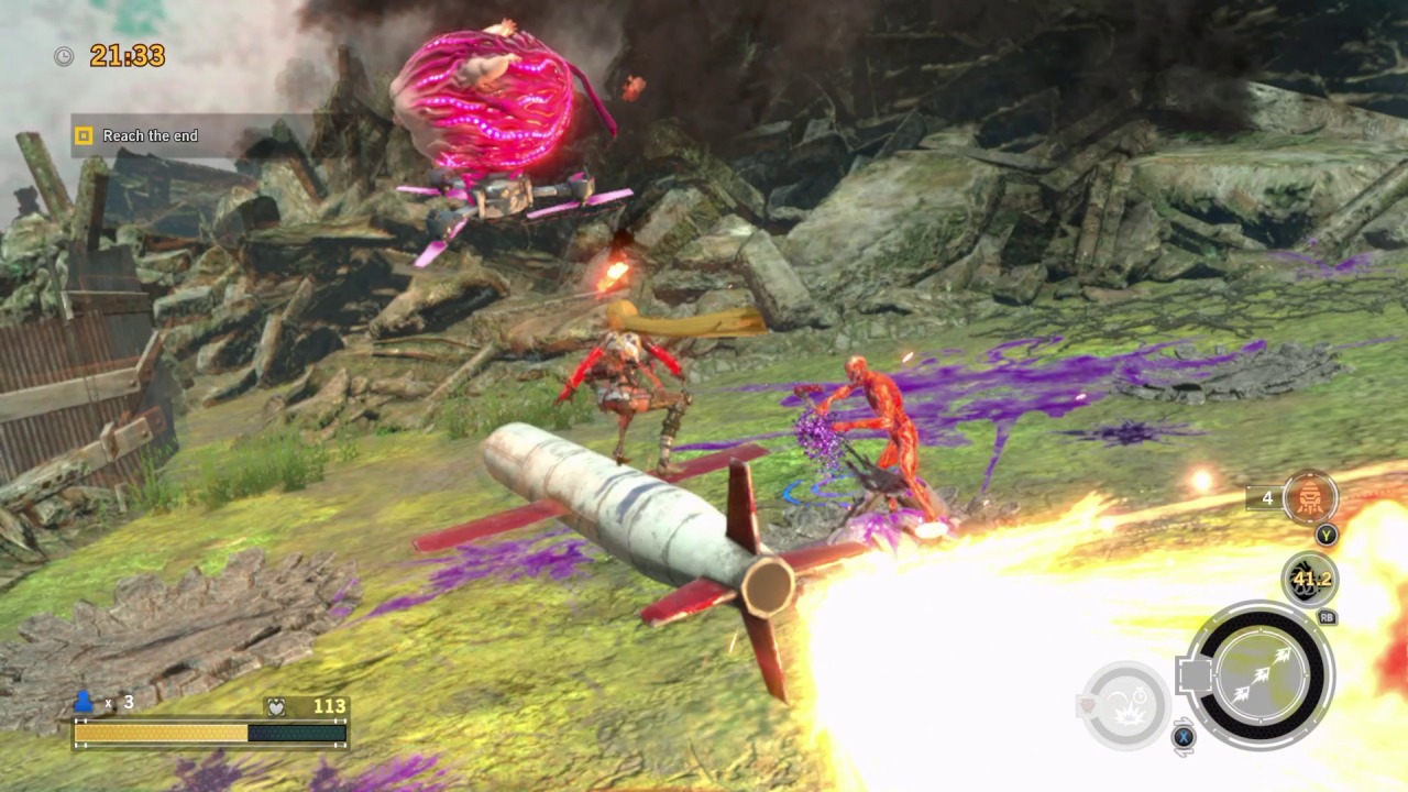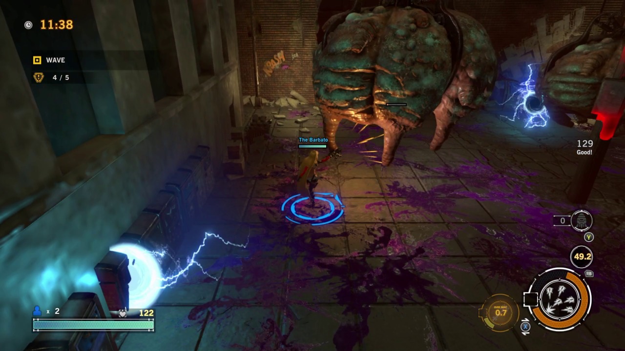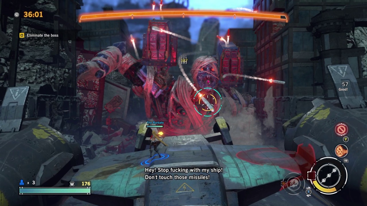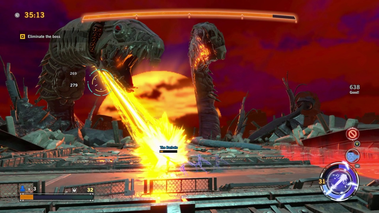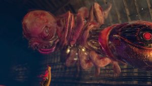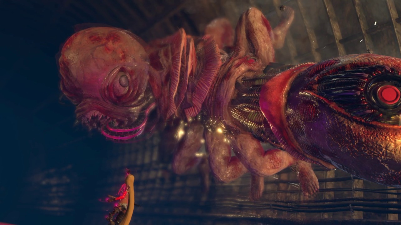 Those who do stick with it will get to appreciate some solid boss fights that pit you against massive monstrosities. These fights are the highlight of the game, providing a fair level of challenge that’s reminiscent of previous games. One boss fight has you shooting at a demonic train, only for it to transform into a creepy baby that crawls along the ceiling and gives chase. Another fight has you fighting against a robot mummy atop the Guillotine, which will fly around and make sharp turns to throw the monster off your back, all the while forcing you to dodge its onslaught of missiles and lasers. These fights mostly utilize a behind the back shooting gallery approach, which makes the action easier to follow while also framing it in a more stylish light. There isn’t a single weak boss in the bunch, but asking players to grind their way through a dozen hours or more of repetitive missions just to reach these brief flickers of glory is a big ask.