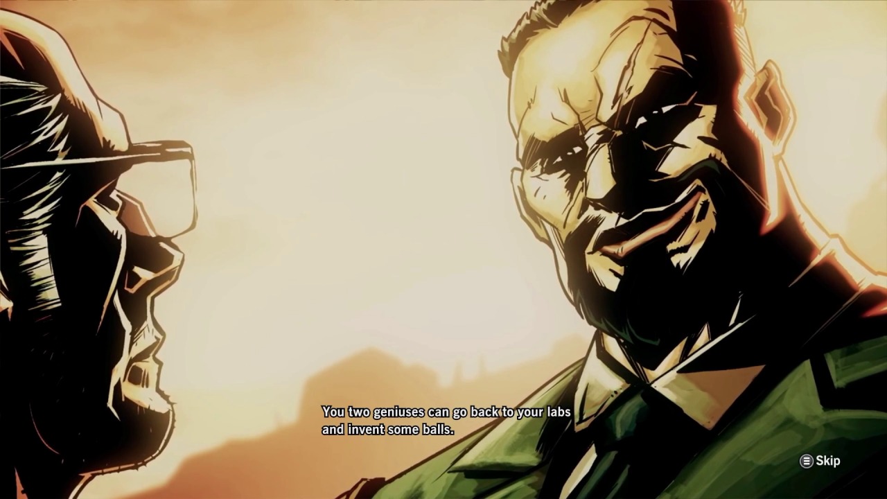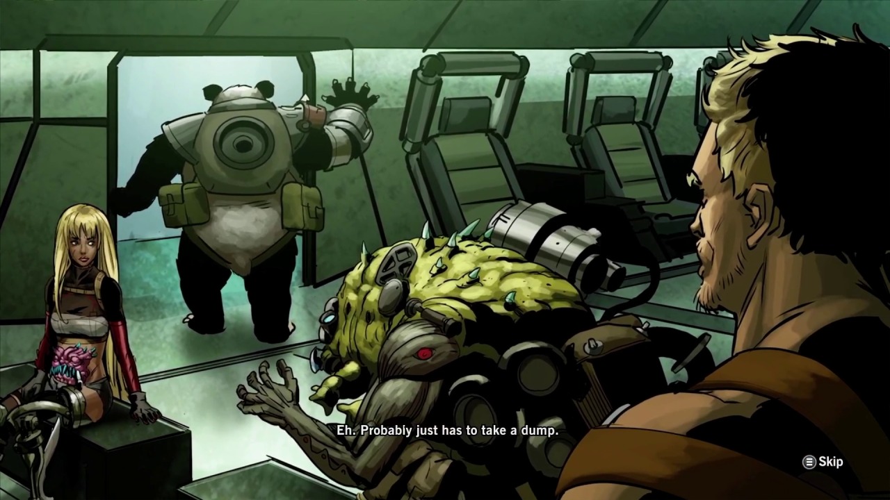 The story itself is straightforward, but the style and delivery make it a fascinating thing to behold and not for positive reasons. The script is excessively vulgar and has characters cursing in almost every spoken line. It makes sense that the characters wouldn’t be pleasant considering the harsh world they live in, but it becomes so egregious that it feels like the writing wants to be cool and just comes off as silly instead. There’s a predictably quip-heavy style to the banter that accompanies the vulgarity and is sure to displease those who have grown tired of Marvel movie-style dialogue. In order to even see the game’s story, you need to unlock and watch the cutscenes at the hub, which are hidden in one of the tabs of an otherwise unrelated menu. If you don’t check this menu, you won’t see another cutscene until the ending! Rogue Corps was written by Evan Dorkin and Sarah Dyer, both of whom have had extensive careers within comics as well as some experience with TV shows like Space Ghost Coast to Coast. The story is presented through comic book-style stills that fit their expertise perfectly, but can look a little cheap when action is being depicted.