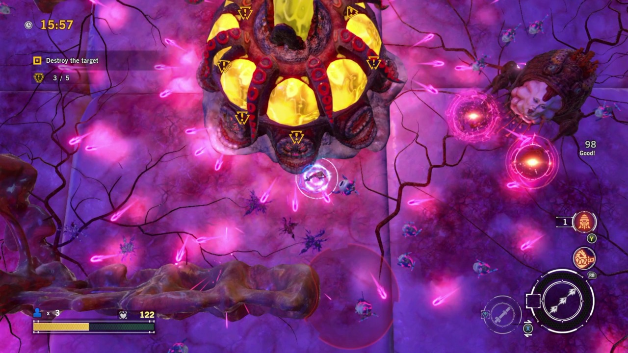 Rogue Corps also has a novel take on equipment beyond the guns. Instead of armor or accessories, you can swap out each character’s organs for new ones, all of which offer various benefits. Brains, eyes, skeletons, and hearts can be inserted into your character to boost their health, give them specific defenses, and grant you more lives and bombs to complete missions with. It’s expensive to do, but it’s also possible to hire different surgeons to alter the properties these organs have at random, providing yet another thing to grind for the dedicated. This system is refreshingly unusual and thematically appropriate, but it and the B.A.D system are held back by some lacking UI design that makes it difficult to understand what B.A.Ds and organs do. You’ll accumulate hundreds of items as you play, so you’ll be scrolling through tons of similar looking things every time you want to sell or upgrade something, which tacks on unwanted time to an already slow burn of a game.