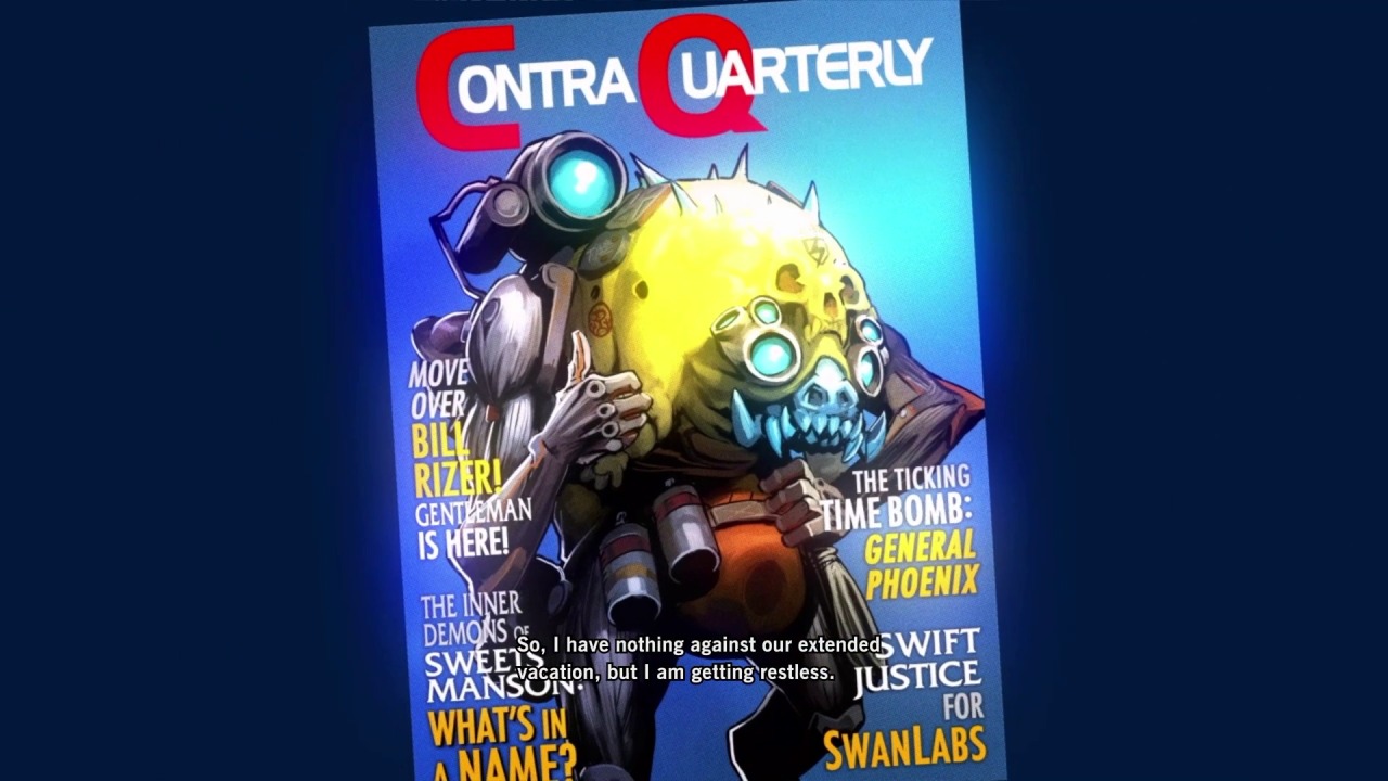 Set after the events of Contra III, Rogue Corps deals with the aftermath of the Alien Wars. In the wake of the war, the mysterious “Damned City” has risen from the ashes, a hellscape full of fiends and treasure alike. Just being in the city causes psychic damage, so only those with immunity known as Jaegers can safely explore it. The titular Rogue Corps is made up of five Jaegers who share the common goal of wanting to destroy the Damned City at any cost: Kaiser, a cyborg that can turn his arm into a drill, Ms. Harakiri, a woman who keeps a monster sealed away in her abdomen, The Gentleman, an unusually polite alien, Hungry Beast, a panda hosting the brain of a scientist, and Aero Captain, the pilot of their Guillotine airship. As the team proceeds with their mission, they also have to rescue a scientist, confront the perpetrator of the presidential assassination they were framed for in the past, and deal with a bit of multiverse theory for good measure.