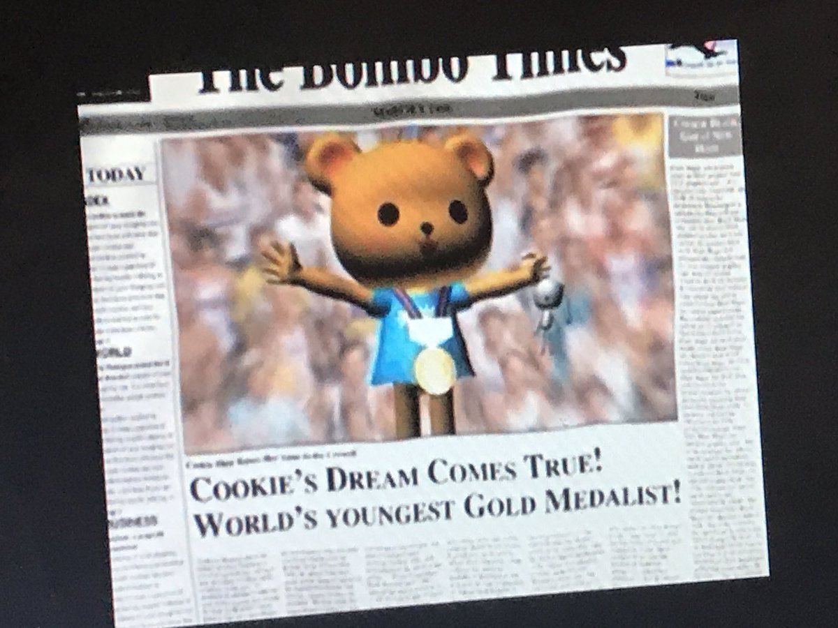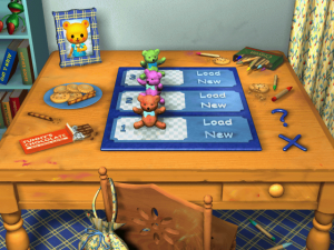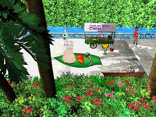 Cookie Blair is a five year old girl from New Jersey, but she think she’s a teddy bear, so that’s how she appears in the game. She’s made her way to the South Pacific island of Bombo World, which holds a special sports tournament every four years. It’s a curious country, though – sometime in the past, aliens visited, and the mayor gave them half of the island in exchange for their advanced technology, where they erected a place called Dero City. This has led to some political instability, which Cookie experiences almost immediately after landing. She attempts to ride a bus to the sports coliseum, only to be denied because she doesn’t have a pass. Which is just as well, because then a jeep drives up behind it, pulls out a rocket launcher, and proceeds to blow the bus to smithereens. Then a helicopter descends, fills the jeep’s drivers full of lead, then takes off.
