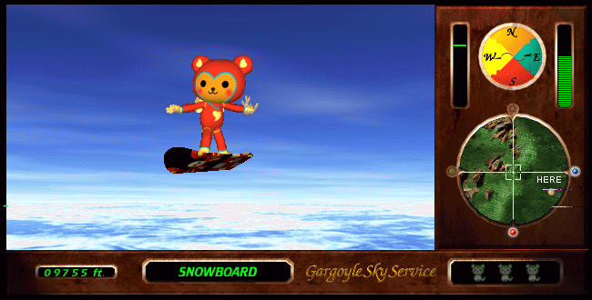 That’s the sort of ridiculous contrast that typifies Cookie’s Bustle. The adorable little girl-bear is wildly out of her depth, in world full of weird characters and dark comedy, as you explore luscious jungles and advanced cyber cities, with randomized events (like stumbling into military skirmishes) and multiple endings. There are over 200 NPCs, some voiced by some well-known (at the time) Japanese actors. In spite of its cutesy exterior, it’s definitely not for kids, and it’s also shockingly difficult – it’s a point and click adventure game, but the puzzles are just as obtuse and vague as any of Sierra’s classic titles, and be prepared for some cruel deaths. You also have to deal with the fact that Cookie is only five years old, and constantly complains about being tired, being hungry, or having to use the bathroom. If you manage to bumble through the puzzles, there are assorted sporting events that take the form of minigames, ranging from sky diving, hammer tossing, track and field, swimming, and an unusual game where you control Cookie on a jet pack as she dodges alien fire.
