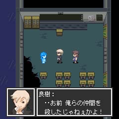 Part-way through the game, the cast meets another group of students. Yuuya is the most prominent of the group, a helpful yet aloof young man who ends up teamed with Yuka. But looks can be deceiving…