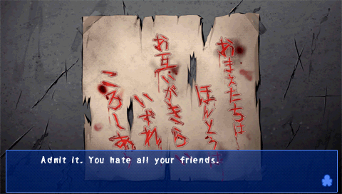 And this is just the central cast. Blood Covered also introduces a whole pile of victims and satellite characters, most of which would be expanded in the game’s “Extra Chapters” or in later entries of the series. Blood Covered‘s cast is so large, in fact, that the narrative has to start making excuses in the form of supernatural elements. Now characters are broken up into “alternate” versions of the demon school, like parallel dimensions, which leaves them more isolated than in the original. The Sweet Home-style gameplay of swapping between teams at will is now mostly gone as a consequence, though it makes a return in the game’s final chapter.