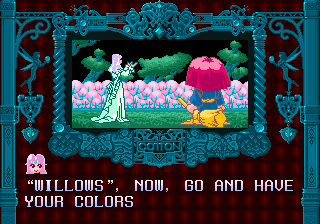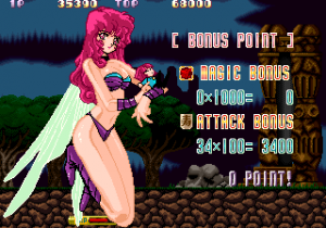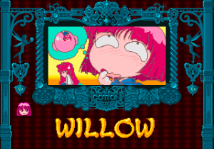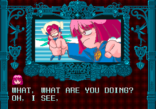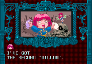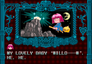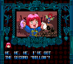 The original Cotton was released in arcades for Sega’s System 16 board. The most well known port is for the TurboGrafx-16 Super CD, published by Hudson, which was in North America. The resolution is lower and the color palette is different, but in spite of some extra slowdown it’s largely a faithful translation. The only change is that the color cycling on the gems is quicker. The biggest addition is the awesome redbook soundtrack, provided by T’s Music – the arcade game’s music was rather subdued, but here it’s a guitar-laden rockfest similar to Dungeon Explorer II and Ys. The cutscenes are now voiced too, but only in the Japanese version. The Japanese version does offer the option for English text, though.