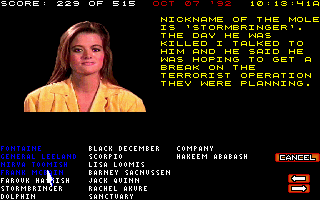 Access Software was ahead of its competitors when it came to multimedia productions, with their games featuring digitized actors and sound, which could even be played on a PC speaker. Countdown was the first game to use the adventure game engine later seen in Martian Memorandum (the second Tex Murphy game) and Amazon: Guardians of Eden. You play as secret agent Mason Powers, who has 96 hours to solve the murder of his boss and uncover a terrorist plot to assassinate the president. Unfortunately, you’ve lost your memory, and the plot is pieced together through the use of flashbacks.