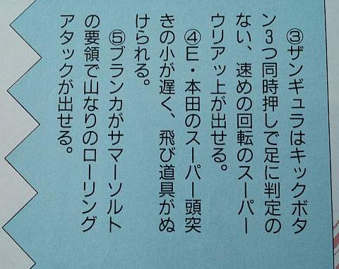 In the January 1993 issue, in reference to one of Zangief’s special moves, they made two ridiculous errors in the same sentence. First, “Zangief” (ザンギエフ) was misspelled as “Zangyura” (ザンギュラ), and secondly, the name of the move, which should have been “Super Lariat” (スーパー ラリアット) but ended up as “Super Uriajjou” (スーパーウリアッ上). That move name is almost complete gibberish, primarily because it ends the word with a kanji character rather than katakana.