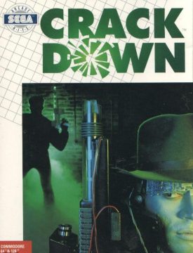 Crack Down (no relation to the 2007 Xbox 360 game) is a unique two player action game that emphasizes strategy and cooperation. In some ways, it’s similar to Gain Ground. Both run on Sega’s slightly obscure System-24 board, utilizing some fairly nice high res (496×384) graphics. And both are overhead action games that rely more on strategy and cooperation than standard run and guns like Commando or Mercs. It was designed by Yutaka Sugano, who had devised Crack Down as sort of an overhead take on his previous arcade game, Shinobi.