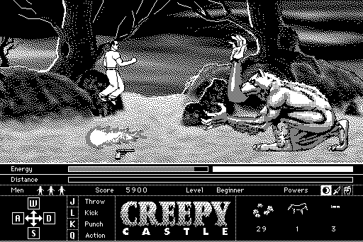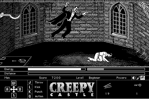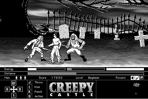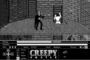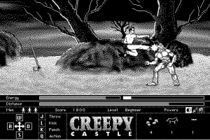 Those few who chose a Mac in the early 90s over a DOS PC or an Amiga had a selection of games to choose from that could be described as “eclectic”. What you wouldn’t be likely at all to find, however, would be a side scrolling beat-em-up of any sort. Creepy Castle sits at the one exception, and while it’s far from a real classic, it does at least serve as one of the best action games you could find on the early Macintosh. In some ways, you could almost think of it as an alternate take on Splatterhouse, one built on the obtuse puzzles and goofiness the computer games of that era were known for.