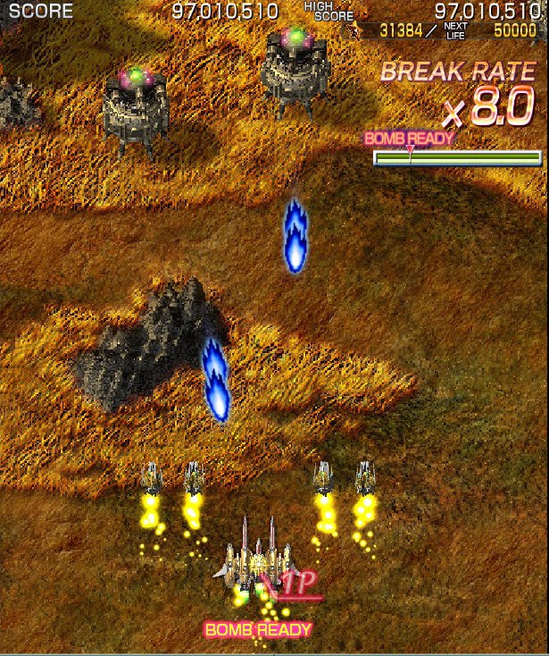 The original release’s excellent sales at Comiket 79 earned a later arcade port. This was published through Taito’s NESiCAxLive digital distribution service, which allows arcade operators who own cabinets powered by the company’s TYPE-X family of boards to download games for their customers’ enjoyment, instead of having to switch ROMs/discs every time he or she wishes to change or update the games being displayed at the establishment. This method has allowed many smaller developers to break into the modern arcade scene due to its low cost of admission and serves as proof of Crimzon Clover’s success, though it was only after the upgraded version was released in 2014 (subtitled World Ignition) that the game reached Western shores through Steam and GOG.