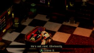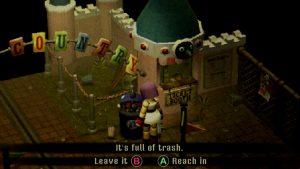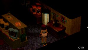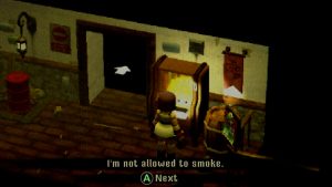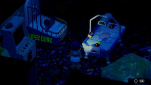 The actual look of the game steers closer to SFB’s Nintendo-centric, old school sensibilities, very specifically pulling from the SNES and N64 era of pre-rendered models, further simplified into collections of simple shapes. It almost seems child friendly, matching well with the theme park setting and arcade games scattered around. That makes the horror elements stick out more, from the foggy, night time lighting to the horrific details on some of the monsters. It’s a unique look that creates a fitting atmosphere, capturing the more innocent elements of the plot and cast, while matching well with the grotesque invaders and concepts at play.
