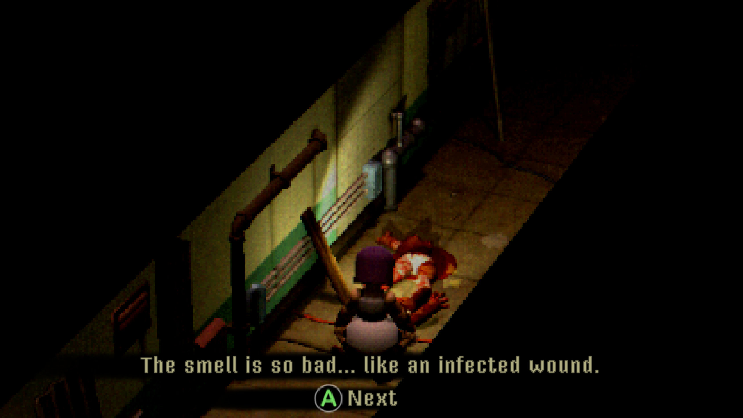 Aiming your firearms is handled with an aiming stance with a laser pointer to line up your shots, sort of like the style Resident Evil 4 popularized, but you remain in a top-down camera angle. This means you need to be close to enemies and get them in camera frame to line up head shots, or else shots you fire off screen may not hit a good spot. That’s important, since resource management is still a large part of the experience. This gets pushed further with a lack of melee in a first playthrough, meaning breaking boxes to check for ammo and health items means sacrificing a bullet.