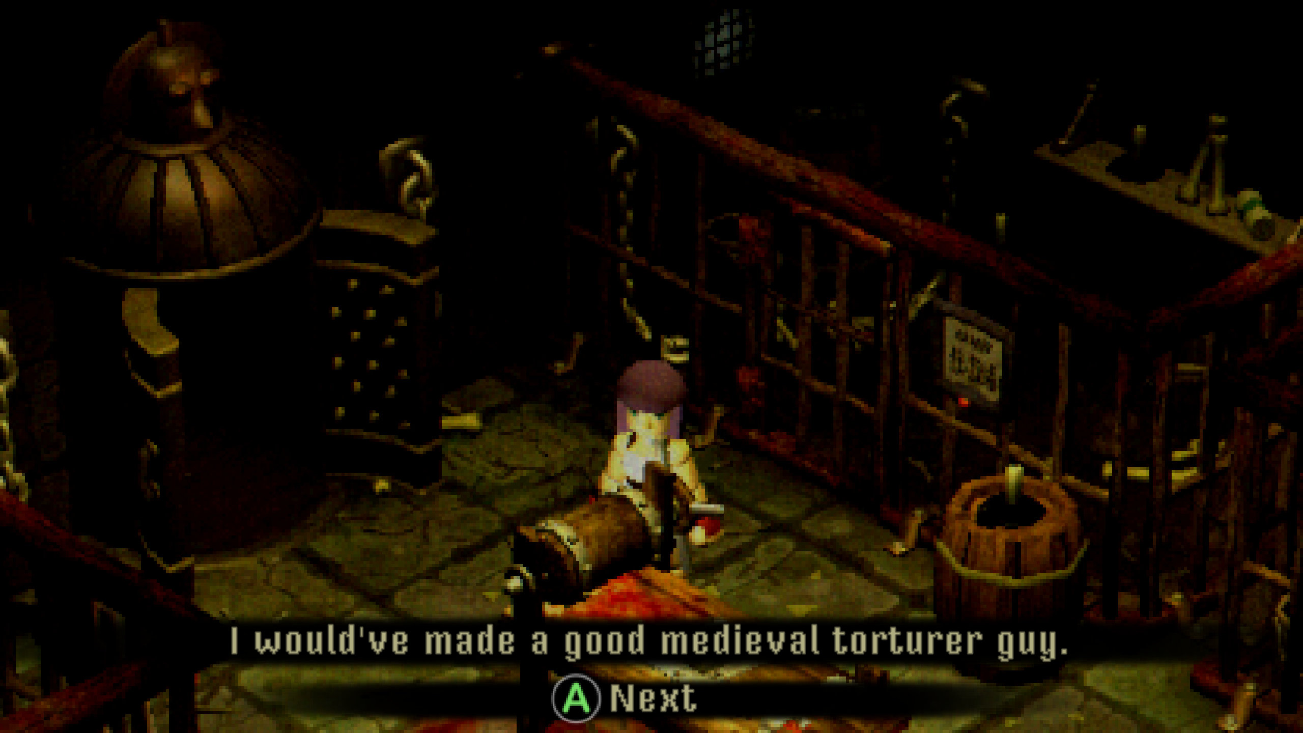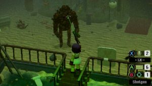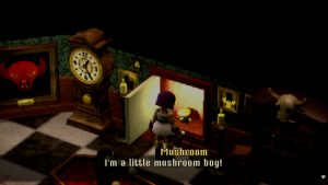 This is more a beginner’s survival horror game, though. Ammo and health is plentiful if you’re able to get used to making good shots or avoiding combat (since enemies will respawn over time) and there’s rare few areas you can end up trapping yourself in a low resource state. Exploration is also constantly rewarded with new weapons, story notes, and adorable little mascot mushroom boys who mod your guns to make them kill things better (cute!). Some puzzles can be a tad esoteric, but most are fairly straightforward or rather clever, becoming satisfying to figure out. The team’s adventure game knowledge definitely came into play here, with only a few head-scratchers thrown in, and often just for extra stuff.