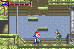 As of recent, the sequels on the Gameboy Advance have irked me quite a bit. Golden Sun, Megaman Battle Network, Advance Wars - they reuse the same engine, graphics and music, and package it as a completely new game. This, as one might imagine, is irksome.And then there's Igarashi and his Castlevania teams, who apparently never sleep and must be fueled by a source so evil, we dare not speak its name. But it's all good, for this has managed to be the third Castlevania game in the two years the GBA has been available, and in breaking current trends, actually manages to create a different and extremely enjoyable game. Aria of Sorrow takes place in the year 2035, though you wouldn't know it - the place looks the same as it ever was. However, this is rather important to the story. Dracula rose in the year 1999, as predicted, only to be sealed inside the moon. The hero this time is Soma Cruz, bishouneny high school student that, in grand Castlevania tradition, will continue to threaten the heterosexuality of male fans everywhere. One night, Mr. Cruz and gal pal Mina Hakuba fall unconscious and wake up inside Castlevania. Their objective is merely to get out alive, but maybe also stumble across the reason why they have been summoned to the ancient castle, which is undoubtedly a horrible secret of some kind. There's also a much larger assortment of characters, including Yoko Belnades, an apparent descendent of Sypha who's investigating the castle; Graham Jones, the leader of an evil cult; Genya Arikado, mysterious dark haired businessman, and Hammer, an armyman who becomes the merchant of the game. Just in this initial concept, this plot beats out the tired "evil friend under Dracula's influence" storyline of the last three games. Much like Alucard, Soma uses a variety of weapons that can be found scattered around the castle, ranging from knives, swords, morning stars and guns. However, the true innovation is the "Tactical Soul System", keeping with the Japanese tradition of giving goofy names to weapon systems. When you defeat an enemy, there is a chance that Soma will collect its soul and gain access to its abilities. Some of these souls merely increase your stats - others give you interesting powers (the Peeping Eye, for example, will point out hidden passages.) The most interesting of these are the attacks. Ever want to toss bones like a skeleton, spit water like the merman, or unleash hordes upon hordes of Fleaman to do your bidding? You can now. Graphically the game looks similar to Harmony of Dissonance, though the color palette is a bit darker. The music, however, has drastically improved. The synth quality is much closer to the regular GBA game, and there's some very high quality songs as well - the opening corridor tune is just as good as any Castlevania main theme, and the clock tower song is a suitably SNES-style rocking successor to The Tragic Prince from Symphony of the Night (let's hope an arrange album will include this song with full guitars.) The sound effects, especially the enemy hits, sound extremel cool, and there's plenty of little voice clips too. The game also manages to fix some of the little niggling problems from Harmony. Though it's not quite as difficult as Circle of the Moon, the game poses quite a bit more challenge. No doubt this is due to the removal of heart-fueled subweapons (you only have a magic meter now) and HP increase items (it only gets stronger if you gain a level.) There's much more in the way of hidden stuff to find, both in the way of hidden passages, various items and souls, different endings and various soul powers. Using transporters is now much friendlier, and you can actually now sell off your useless junk. And while you'll travel through the same cliched areas like the library and chapel, and fight the usual assortment of enemies, there are enough interesting innovations that keep it from becoming too stale. While surely people are getting tired of playing new Castlevanias on portable systems, it can't be denied that they absolutely rock, and Aria is no exception. Another high quality game that every GBA owner absolutely must have in their collection. Thanks goes to Simon Belmont for the full size scans of the Aria of Sorrow artbook that came in limited quantities with the Japanese game, and also for the guide book scans.