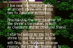 Mina Hakuba, the only daughter of the shrine's caretaker, is both my classmate and my childhood friend.