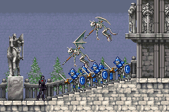 A brigade of skeleton soldiers and winged skeletons charges forth from the castle.