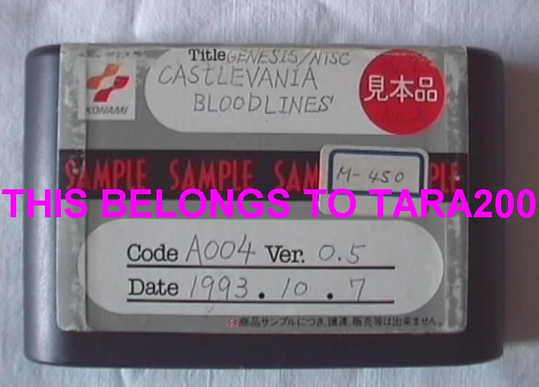 A few years ago, there was a rather bizarre auction for a "Castlevania Bloodlines" beta cartridge. There were several pictures featured, but the auctioneer wouldn't give off much information about it. The reserve was set impossibly high and apparently no one actually won the cartridge, but s/he refused to have it dumped for emulation or tell anything else about it. Thanks to Anapan, Setzer the Gambler and Ed Oscuro, who posted these old pictures on the forums. Note some of the small differences - the Hellhound in the middle of the first level looks completely different, and there appears to be a part of the fourth level that had a blimp - something not in the final game. Also take a look at these Electronic Gaming Monthly Scans (Page 1 and Page 2) for similar pictures. If you have any more screenshots or have anymore information, please, submit it!