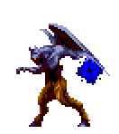 Pazuzu is an evolved form of the Leviathan Gargoyle from Castlevania 3 - it slowly jumps forward, but this one shoots a spread of fireballs and will summon legions of flying imps to help in its attack.