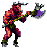 A Minotaur is a combination of a bull and a human. He carries an axe, and is