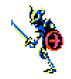 This creation will burst from the shardes of stained glass windows and attack with its swords. It's a minor enemy in the chapel level of Chronicles, where it will also throw shards directly at Simon, and as fairly simple peon enemies in the Villa of Castlevania 64.