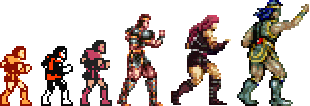 Richter wears a stylish headband and a cool blue uniform. In 'Symphony of the Night', he wears his hair quite a bit longer and looks more like an 18th century warrior than before. He also gains a few new abilities, most noticeable a dash, a slide attack, a super jump and an uppercut. |