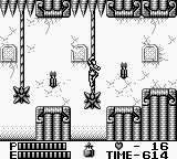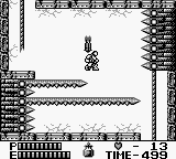 wrongs they once inflicted upon Gameboy games.Surprisingly, they succeeded. Castlevania 2: Belmont's Revenge is far, far better than its predecessor, and stands as one of the best action games for the original Gameboy. Once again, you are thrown into the shoes of Christopher Belmont, this time trying to save his son Solieyu from Dracula. In a change from every other Castlevania out there, Belmont's Revenge takes the Mega Man route and let you choose what levels you will tackle in any order. Dracula has four themed castles: air, plant, earth and crystal. There's no advantage in picking one level over another, so it's purely a matter of preference. Gone are most of the annoying jumps. You actually have special weapons this time, although they're limited to the axe and holy water (oddly enough, the Japanese version has the cross instead of the axe.) Your whip only downgrades when getting hit by certain enemies, so you're never left as defenseless. The levels are still pretty long, but there are midpoints you respawn at after continuing. And while the game poses a good challenge, especially in the final boss battles, it doesn't cross the line of frustration nearly as often as Adventure. The graphics had improved as well - everything is much more detailed. And once again, the music is a high point - it's amazing what the Konami composers could do with such a crappy sound chip. The game still moves a bit sluggishly - Christopher could use a workout just so he'd move a bit faster - but still isn't nearly as bad as before. In short, Belmont's Revenge is one of those old Gameboy games that's still worth tracking down, and even manages to outside its Gameboy sequel, Castlevania Legends.