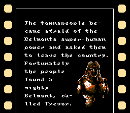 The townspeople became afraid of the Belmonts super-human power and asked them to leave the country. Fortunately the people found a might Belmont, called Trevor.
