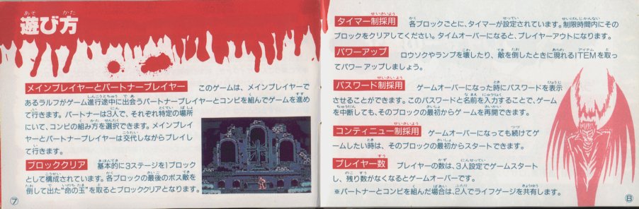The plot takes place 100 years before the original Castlevania (or so the manual states - the official Japanese timeline says differently.) The Poltergeist King has blessed Trevor Belmont with his whip and several weapons, of which he has to defend his home town of Warakiya from the advanving hordes of Dracula. Wherein the series' gameplay was changed to more of an adventure/RPG with Simon's Quest, Castlevania 3 is more action-oriented like the original. The play mechanics the same, right down to the status bar. However, once you beat the first boss, you begin to see the differences. Rather than proceeding to the next level, you get a choice - do you immediately head into the forest to continue with your journey, or take a detour into the clocktower? There are several branch points after many of the levels, each leading you on a different course towards the end of the game. On the course of your travels, you'll meet one of three spirit companions. Grant DaNasty is a fierce pirate who is very fast and can climb on walls, but has very poor attack skills. The wizard Sypha Belnades is also fairly weak, but has a variety of extremely powerful spells that replace the regular subweapons. Alucard (star of his own game later down the road), Dracula's son, has a fireball attack and can change into a bat to fly over obstacles. You can only have one companion at a time, and Trevor and your compatriot share the same life meter. Switching between the Belmont and your selected spirit guide is as easy as hitting the Select button. Not only does this adds incredible amounts of dimensions to the gameplay - both in conquering levels and beating bosses - but it adds an incredible amount of replayability to an already respectably sized game.