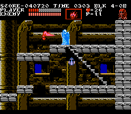 The graphics are slightly better than either of the previous two games, allowing constant vertical scrolling areas and some neat graphics. Some of the backgrounds still look a bit jumbled All of the bosses generally look pretty cool, although some of them are overused (you can face the Cyclops up to three times in one game, probably due to cartridge space restraints.) The music is all wonderful, as in pretty much all Castlevania games. There are some really good drums, especially in the first level.
