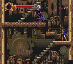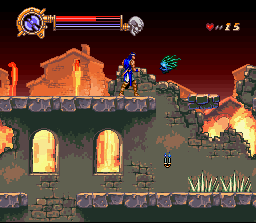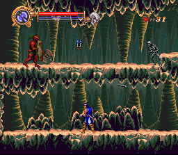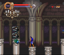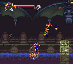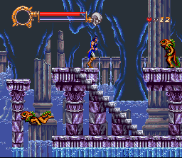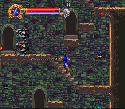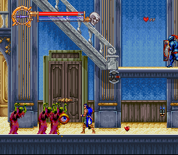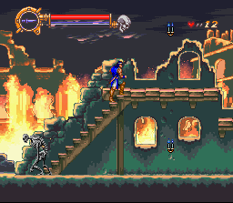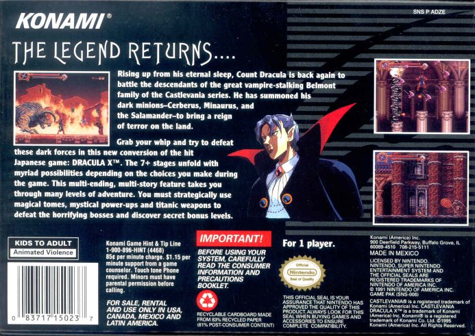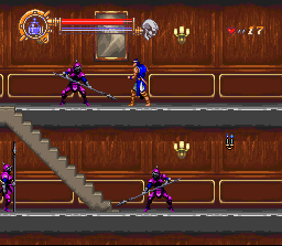 Back in 1995, Castlevania fans everywhere were elated that the legendary PC Engine title Dracula X would be ported over to the SNES and released in America. Sadly, this turned out to be one of the biggest disappointments in the series. Rather than a direct port, Castlevania: Dracula X is meant to be more of a sequel to the original game (it's called Dracula XX in Japan). While the character graphics and controls are the same, the levels are completely different, and almost everything that made the original so appetizing is gone.The plot is the exact same as its predecessor - Dracula has risen again, and has kidnapped the girlfriend of Richter Belmont. You must venture inside the castle in order to save you sweetheart, her sister, and of course, abolish evil. While you must traverse a total of seven levels, two are alternate stages that require a bit of extra effort to get to. Hidden within these stages are the hostages you must find - else you end up with the depressing ending. For those that haven't played the PC Engine Dracula X, the controls have taken a slight step back from Super Castlevania IV. You can't quite control your jumps in mid-air, multi-directional whipping is gone, and you can't swing your whip around either. The invulnability time after being hit has also been reduced greatly, so you'll find yourself losing lots of life, very quickly. Now here comes the bad parts. While you can rescue Maria, you never get to play as her, removing one of the most amusing aspects. There aren't nearly as many hidden levels or secrets as the PC Engine game. And, to be honest, the graphics are pretty bad. Granted, the graphic designers were restricted to the space confines of a cartridge compared to a CD-ROM, but the backgrounds all have a very dull, repetetive look to them, compared to the bright, extremely detailed look of the original Dracula X. Even Super Castlevania IV, coming out four years prior, had much better graphics. The only interesting visual effects are the flames in the background of the first level. If that weren't enough, the distinct anime look (and cutscences) are nowhere to be seen, replaced with incredibly ugly American comic book-style art in the intro and endings. So, you say? That's not too bad - only a few missing features doesn't ruin a game. You might think that. Sadly, the biggest problem is that the level design is just incredibly uninspired - most of them are just flat out dull. Dracula X introduced a couple of incredibly irritating enemies, most noticeably the Spear Guards and Armored Knights, but they were never so overused as they are here. This leads to great annoyances, as you can imagine. And someone, somewhere, must've found the original battle with Dracula too easy, because the designers decided to have you fight the final boss on a series of columns, where a tiny misstep means your death. Castlevania has always been frustrating, but it usually keeps a somewhat fair sense of balance (the Original mode in X68000/Chronicles excluded.) Dracula X fails in this respect. If one aspect survived intact, it's the music. Most of the music has been ported over the SNES sound chip with incredible skill, and all of the songs sound great. Personally, I even find a few songs (the first level, for instance) to be superior. You'll notice that a good part of this review is comparing this game to the first Dracula X. To be objective, the SNES Dracula X is not a horrible game - it's still a competant, fairly enjoyable title if you can put up with its flaws. But Castlevania games have the reputation for being more than merely competant, and that's why this edition, sadly, falls a bit below the rest.