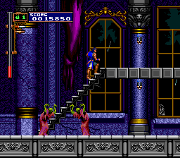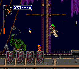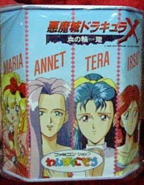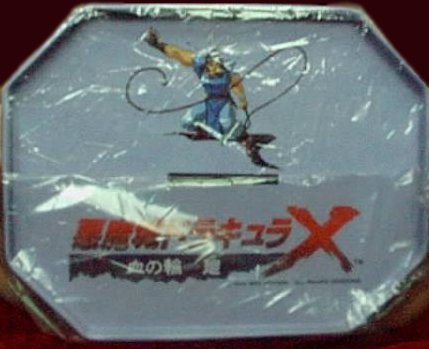 While Super Castlevania IV for the SNES brought the series to the new generation of 16-bit gaming, it seemed to lack some of the strides that previous games had taken. Where were the multiple characters, alternate routes, and different endings? Dracula X, released only in Japan for the PC Engine Super CD-ROM (known as the Turbografx-16/Turbo Duo in America), is widely regarded as the Holy Grail among Castlevania games, due to not only its aesthetic qualities, but also its sheer size.In the year 1788, Dracula has once again been resurrected by some crazy cultists. He seeks revenge on Richter Belmont, heir of the family that so often sends him to the great beyond, by capturing his girlfriend Annet and goading him into a rescue attempt. Not one to stand by and let his woman down, Richter sets off to meet his destiny. One of the biggest advantage of the CD-ROM format is the huge amount of available space, and it shows in the visuals. Dracula X looks absolutely incredible - the anime-inspired look is quite a bit more colorful than the dark, more gothic-themed Castlevania IV, and blows away the muddy look of the forgettable SNES semi-sequel. Not only are the backgrounds incredibly detailed, but the characters and enemies look gorgeous as well. The format also leads to several anime cutscenes, as well as CD Audio music. For the first time, the Castlevania series was able to get high quality redbook audio. While several old themes make an appearance, there's an abundance of memorable new tunes, including Richter's Theme (used in the opening and first level). While it's tempting to hold Dracula X in such high regards simply for the high levels reached in its graphics and music, that's not the real reason the game is so incredible. Dracula X is, quite simply, huge. There are only seven levels that need to be traversed in order to win, but there are five secret levels that must be found through a bit of ingenuity. Most of the secrets aren't horribly difficult to find, but it's unlikely you'll see all there is to see in a single playthrough. Many levels have alternate pathways within themselves. If that weren't enough, there are four captured hostages that, when found, will lead to the best ending. The levels themselves are very interesting as well, taking you through one of the old towns from Castlevania 2 (except on fire), making your way through the old Castlevania entrance hall (except you're being chased by a gigantic bull demon), river rafting down a mountain, and dodging spikes and other traps in the dungeon - there's a lot to see and do here. And in one of the most surprising momements of the series, one of the kidnapped actually joins you. Little Maria Renard, with blond hair and pink dress, armed with a variety of adorable animal helpers, will join Richter in the battle against Dracula. While the juxtaposition between the game's horror themes and the overwhelming cuteness is a bit odd at first, soon it will seem common place to take down a horde of zombies with an adorable 12-year old girl. I'd venture to say Maria is one of the best things about the game - although she can't take as many hits as Richter, her double jump makes her a lot more flexible. And her attack, where she throws doves at a short range that return like boomerangs, is actually much easier to wield than Richter's whip. I'd say that, in some ways, she almost makes the game too easy - Dracula is an absolute piece of cake when playing as Maria. But she's only there to play as if you want to - if you prefer the challenge, you can switch back to Richter at any Game Over screen. If there's any area of the game that can be improved, it's the controls. Many of the amenities introduced in Super Castlevania 4 are gone - no multi-directional whipping, minimal controls in mid-jump, no whip flinging. Richter has a backflip that can be executed on by tapping the jump button twice, which is very useful for some of the more irritating enemies. However, a new feature called the "Item Crash" is introduced, where you'll take your special weapon and do a major attack that eats up a lot of hearts. Also of annoyance is the fact that invulnerability time - that is, the flicker after getting hit where you can't be damaged - has been greatly shortened, meaning you'll tend to lose life very quickly if you're not careful. Thankfully, the game isn't too difficult, at least compared to the NES entries. While I personally prefer the later generation Castlevania titles - that is, the ones like Symphony of the Night and Harmony of Dissonance, that are more RPG in nature - Dracula X is quite simply the best old-school Castlevania game there is. Even if you're a Castlevania pro and you manage to blast through the game in your first shot, there's a lot of other bits to see, do and experience. Unfortunately, due to marketplace conditions (and the fact that the game is in such high demand), Dracula X often goes for very high prices - often $100+. And Konami, somewhere along the line, decided to crack down on distribution of the ISO image. Thankfully, the game is fully playable on the Magic Engine emulator, so you don't need to shell out the money for a PC Engine if you want to play. Hopefully Dracula X will be the next to be considered for the Chronicles line. Crazy promo item pics from Setzer the Gambler, from some Japanese webpage.