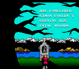 The encounter with Dracula is terminated. Simon Belmont has put an end to the eternal darkness in Transylvania. His blood and sweat have penetrated the earth and will incude magic and happiness for those who walk on this land.