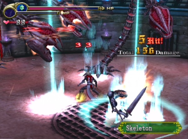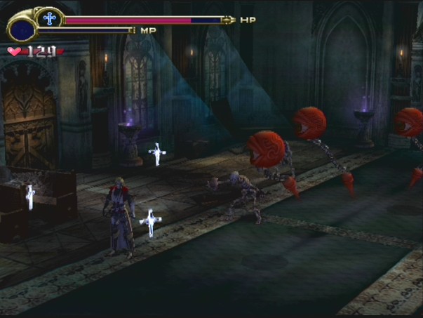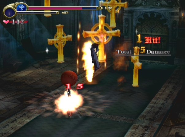 The levels are populated with the usual gamut of Castlevania enemies, ranging from skeletons to flea men to mermen - many of these who explode in blood when killed, owing to the M rating. The level boss is a big golem - given that this boss was boring and overused back in Harmony, its subsequent appearance in Aria and again here in Lament just hammers in that maybe some more creative minds need to be in control of the design.